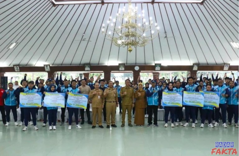 BOJONEGORO – Radarfakta. Senin 29 September 2025 Kabupaten Bojonegoro menunjukkan komitmen kuat dalam membangun Sumber Daya Manusia (SDM) unggul di bidang olahraga. Bertepatan dengan peringatan Hari Olahraga Nasional (Haornas) ke-42, Bupati Bojonegoro, Setyo Wahono dan Wakil Bupati Bojonegoro, Nurul Azizah menyerahkan bonus kepada 104 atlet dan 23 pelatih berprestasi peraih medali di Pekan Olahraga Provinsi (PORPROV) IX Jawa Timur (28 Juni-5 Juli 2025).