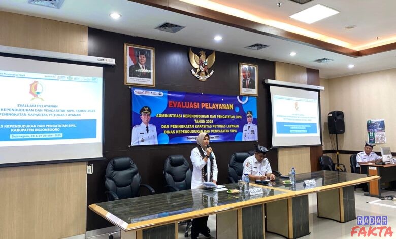 BOJONEGORO _RADARFAKTA. Peningkatan pelayanan kependudukan, inovasi, dan penyajian data valid menjadi poin penting saat Evaluasi Pelayanan Administrasi Kependudukan dan Pencatatan Sipil Tahun 2025.