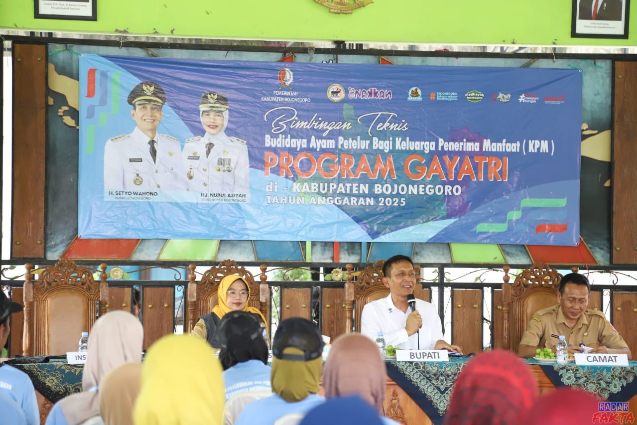Bojonegoro_Radarfakta. Bupati Bojonegoro Setyo Wahono membuka secara resmi kegiatan pelatihan Gerakan Beternak Ayam Petelur Mandiri (GAYATRI) yang dilaksanakan di Balai Desa Pungpungan, Kecamatan Kalitidu pada Senin (03/11/2025).