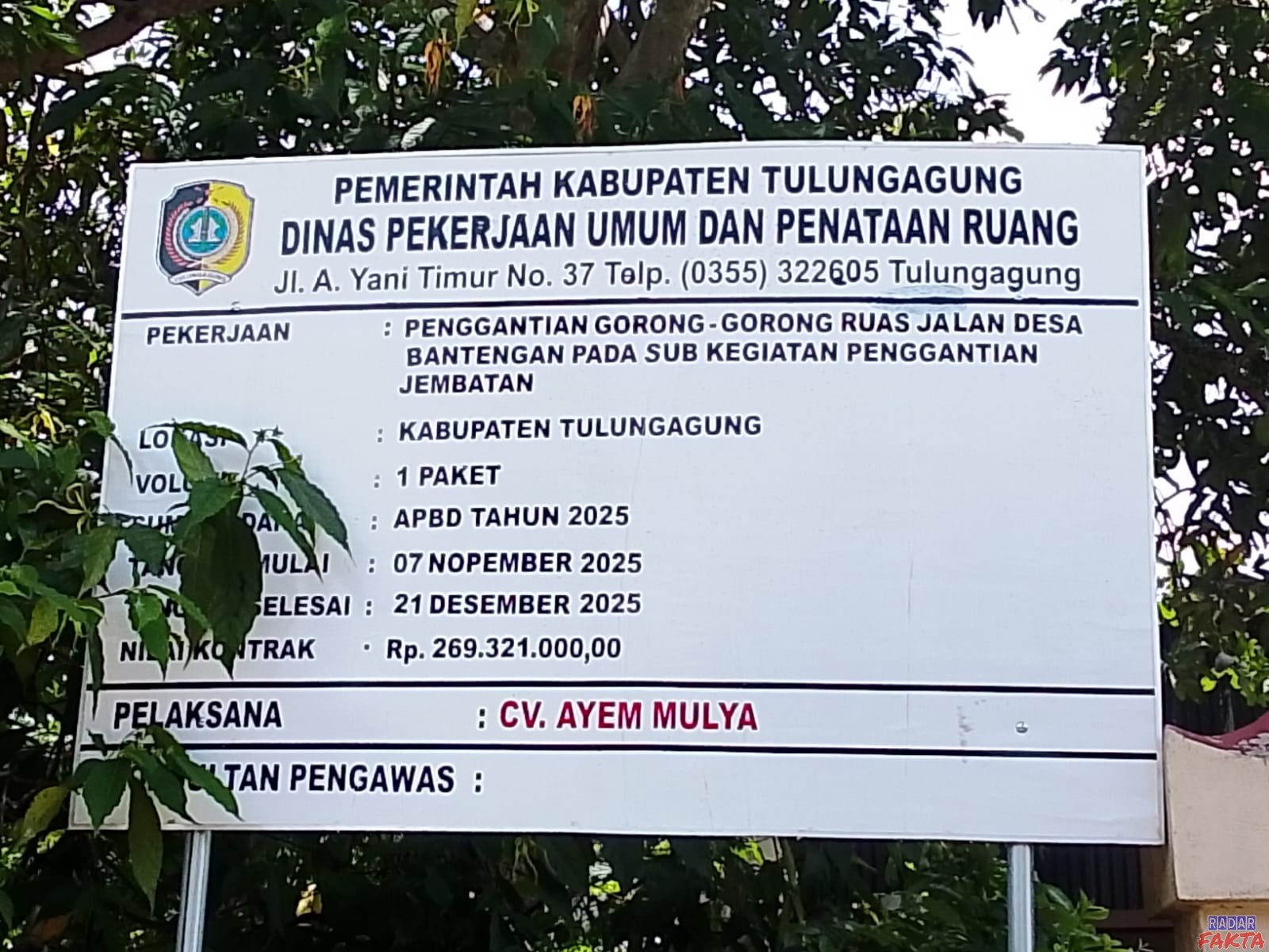 TULUNGAGUNG,Radarfakta – Transparansi di tubuh Dinas Pekerjaan Umum dan Penataan Ruang (PUPR) Kabupaten Tulungagung kembali menjadi sorotan tajam. Lembaga Swadaya Masyarakat Generasi Masyarakat Adil Sejahtera (LSM GMAS) resmi “menyeret” polemik pembangunan Jembatan Bantengan ke ranah hukum keterbukaan informasi dengan melayangkan surat resmi pada Selasa (23/12).