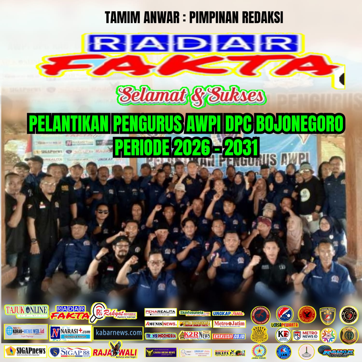 “Saya pribadi dan keluarga besar Radarfakta.com mengucapkan selamat dan sukses atas pelantikan DPC AWPI Bojonegoro. Semoga dengan nakhoda baru ini, AWPI semakin solid dan terus menjadi wadah yang mencetak wartawan-wartawan berintegritas,” ujar Tamim, Senin (09/02/2026).